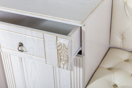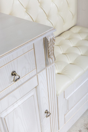 Фасады имеют покрытие патиной, что придает изделию особый внешний вид. Патина защищена матовым лаком.