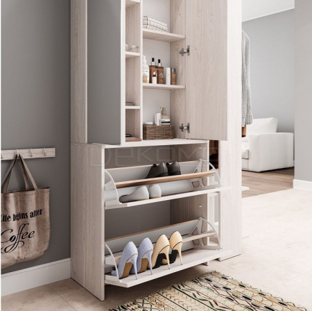 фасад обувницы выполняет функцию ручки,