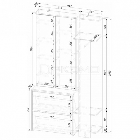 - Ш:358 x Г:1142 x В:2083