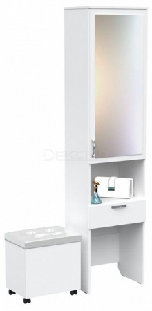 зеркало, полки, пуф на колесиках