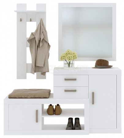 (Компасс-мебель) Стенка для прихожей Ассоль белое дерево