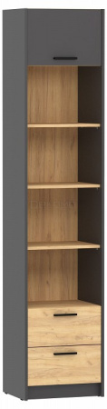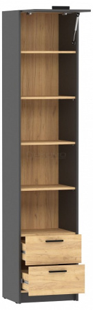 Открытый шкаф-пенал НМ 014.06 из модульной серии Оттавия дополнит интерьер любой комнаты. Шкаф с открытыми полками , 2-мя выдвижными ящиками и антресольной полкой за откидной дверцей. Откидная антресольная дверца оборудована газлифтом. Направляющие ящиков: шариковые, полного выдвижения.