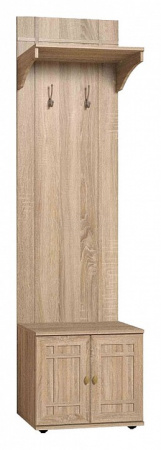 Вешалка с тумбой Шерлок 74 - замечательный выбор для узкой маленькой прихожей. Модуль шириной всего 560 см уверенно вместит плечики с верхней одеждой и несколько ее экземпляров на крючках. Полка прекрасно справится с ролью подставки для сумок и пакетов, распашной шкафчик с двумя дверями станет вместилищем для обуви, а на небольшой антресоли удобно расположатся головные уборы и зонты.