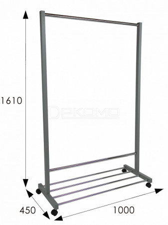 Мобильная гардеробная вешалка на 8-10 посетителей с подставкой для обуви или сумок. Эта вешалка идеально подходит для использования в небольших офисах для размещения верхней одежды сотрудников и посетителей.