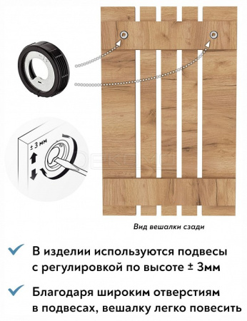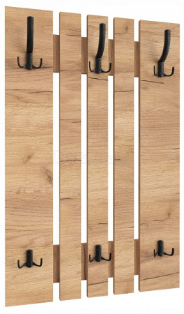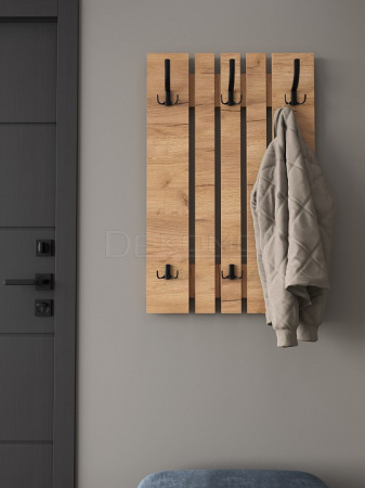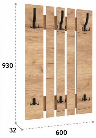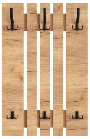Вешалка ВН-11 компактна и функциональна, поэтому органично дополнит любой интерьер вашей прихожей. Вешалка состоит из нескольких объединенных панелей лдсп, трех двойных и трех тройных крючков, благодаря чему на ней можно с легкостью разместить верхнюю одежду нескольких человек. Крючки металлические, максимальная допустимая нагрузка до 15 кг на один крючок.