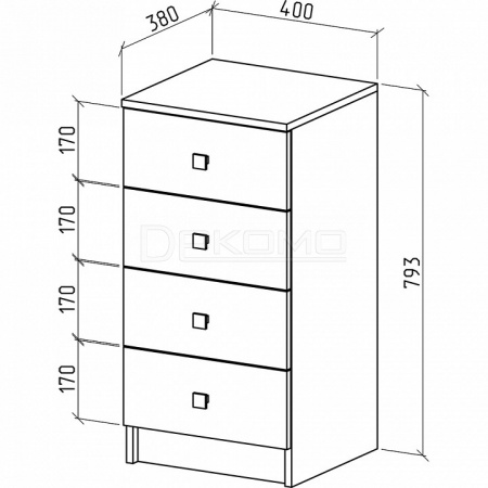 Высота ящиков - 170 мм.