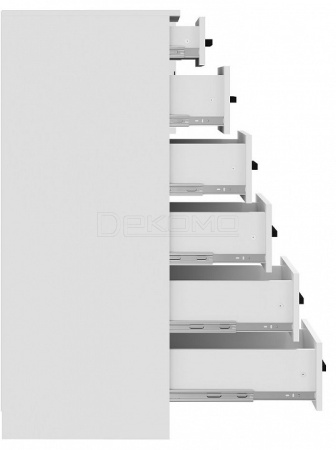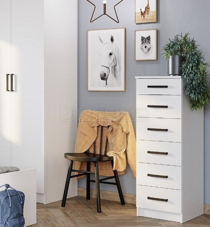 Высокий комод с 6-тью ящиками на направляющих плавного выдвижения поможет организовать хранение вещей в сложенном виде, аксессуаров, книг.