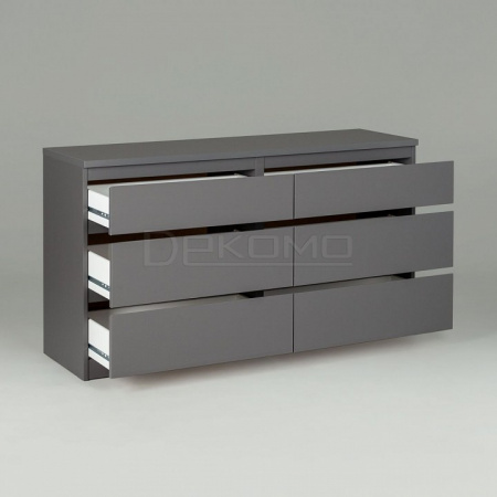 Комод КАСТОР с шестью наружными выдвижными ящиками, 1297х396х716, цвет Серый. Изготовлен из кашированного ДСП толщиной 16 мм. Крепится к стене. Гарантийный срок для жилых помещений 24 месяца, для общественных помещений - 18 месяцев.