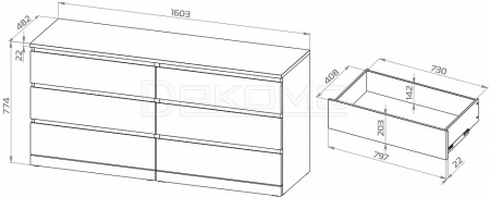 - Ш:1600 x Г:480 x В:770