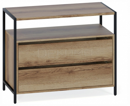Открытая ниша под столешницей обеспечит легкий доступ к предметам первой необходимости и сделает комод визуально легким, а два вместительных выдвижных ящика разместят все необходимые личные вещи, одежду и белье.