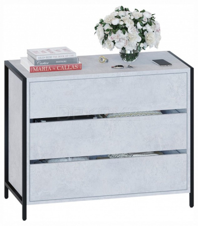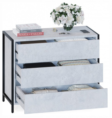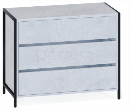 Комод Т-401 в стиле лофт — вместительная система хранения для современной спальни, гостиной или прихожей. Модель смотрится эффектно благодаря черному металлокаркасу на регулируемых подпятниках и деталям толщиной 22 мм с противоударной кромкой. Рабочая поверхность шириной 940 мм и глубиной 449 мм позволит с комфортом разместить большой телевизор и предметы декора, при этом эффективно задействуя пространство комнаты. Для хранения документов, белья и личных вещей предусмотрены три вместительных выдвижных ящика. Их плавное и бесшумное открывание обеспечивают надежные шариковые направляющие, а вместо привычных ручек сделаны стильные вырезы между фасадами.