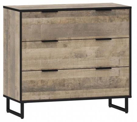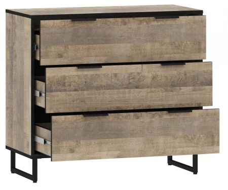 Комод из коллекции Фолк - современная, смелая и яркая мебель в стиле лофт, хай-тек или индустриальном. Комод с 3-мя выдвижными ящиками на направляющих полного выдвижения. Изделие на металлическом каркасе установлено на высокие опоры с пластиковыми подпятниками.