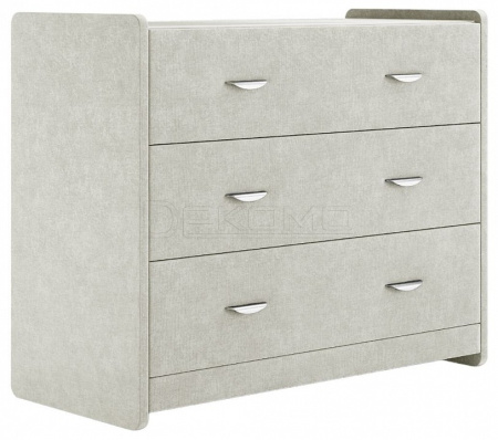 Современный и элегантный комод отличается повышенным удобством. Фасад ящиков и стенки комода покрыты обивочным материалом. Для удобства использования и продления срока эксплуатации, рекомендуется использовать стеклянную накладку. Накладка используется в качестве столешницы для тумбы и защищает ее от повреждений и загрязнений.