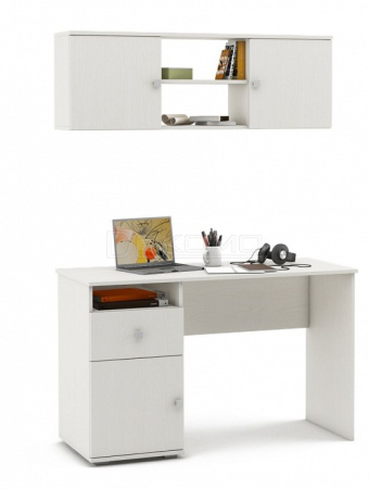 Набор для кабинета, состоящий из пиьсменного стола с тумбочкой слева и навесной полки