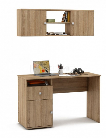 Набор для кабинета, состоящий из пиьсменного стола с тумбочкой слева и навесной полки
