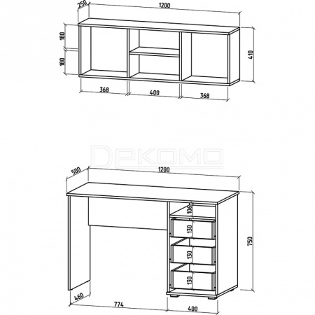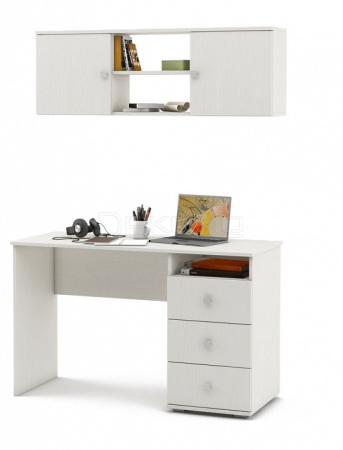 Набор для кабинета, состоящий из пиьсменного стола с тумбочкой справа и навесной полки