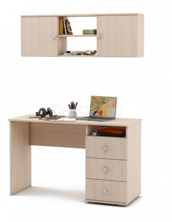 Набор для кабинета, состоящий из пиьсменного стола с тумбочкой справа и навесной полки