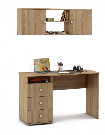 Набор для кабинета, состоящий из пиьсменного стола с тумбочкой справа и навесной полки