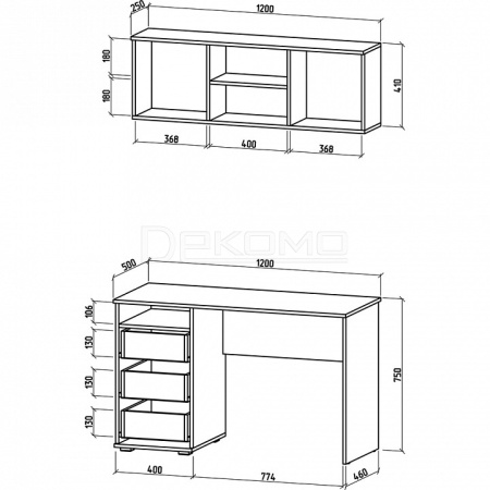 стол письменный - 1200x500x750 мм
