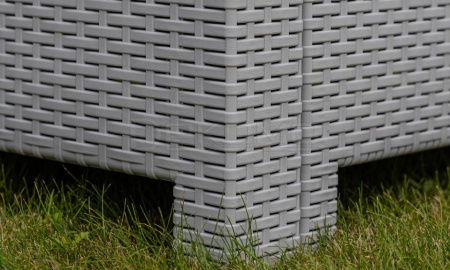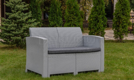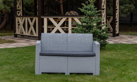 Диван выполнен из окрашенного в массе полипропилена с повышенной прочностью, что обеспечивает ему долговечность и устойчивость к неблагоприятным погодным условиям. Этот материал не только демонстрирует высокие эксплуатационные характеристики, но и легко очищается от загрязнений.