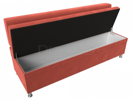 Стайл – прямой кухонный диван с ящиком для хранения продуктов и домашней утвари. Он надежно стоит на высоких ножках. Спинка модели крепится к основанию при помощи металлических труб. Под сиденьем расположена ниша для хранения вещей. Конструкции придают устойчивость и надежность металлические крепкие ножки.