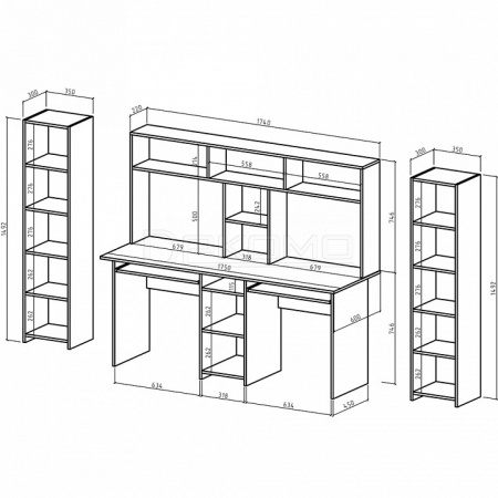 стол компьютерный - 1750x600x1492 мм