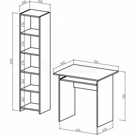 - стеллаж комбинированный - 350x320x1492 мм,