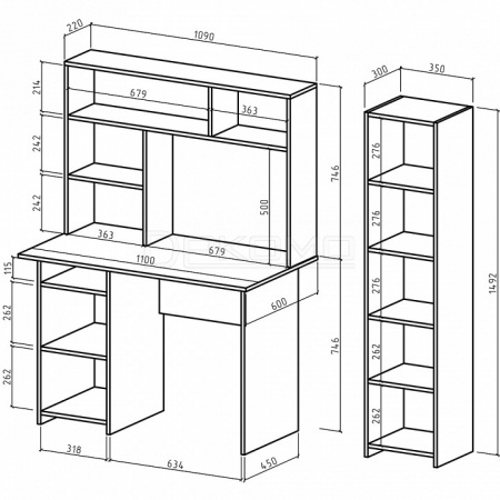 - стеллаж комбинированный - 350x320x1492 мм,