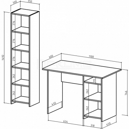- стеллаж комбинированный - 350x320x1492 мм,