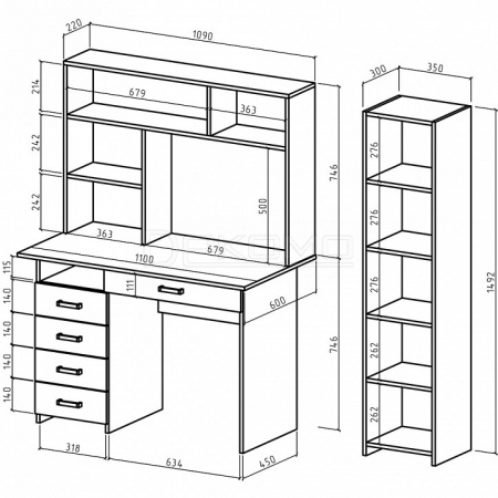 - стеллаж комбинированный - 350x320x1492 мм,