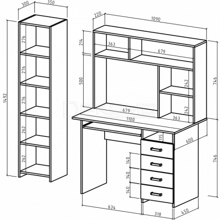 - стеллаж комбинированный - 350x320x1492 мм,