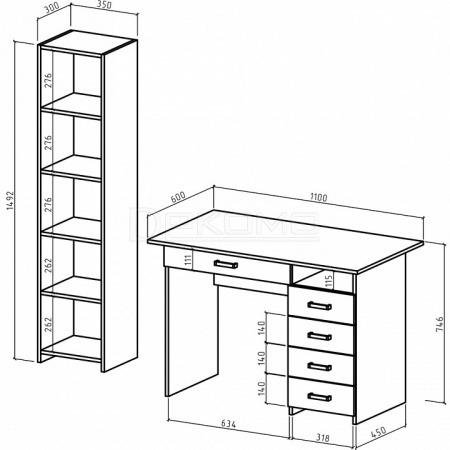 - стеллаж комбинированный - 350x320x1492 мм,