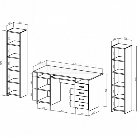 - 2 стеллажа комбинированных - 350x320x1492 мм,