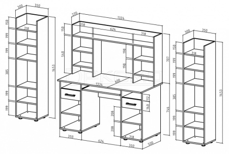 2 шкафа комбинированных - 350x300x1453 мм - Количество секций для хранения: