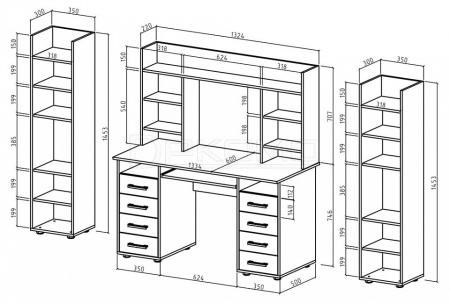 2 шкафа комбинированных - 350x300x1453 мм - Количество секций для хранения: