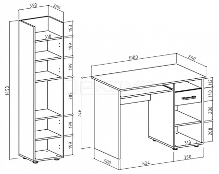 шкаф комбинированный - 350x300x1453 мм - Количество секций для хранения: