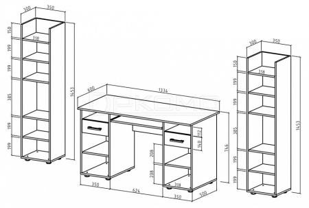 шкаф комбинированный - 350x300x1453 мм - Количество секций для хранения: