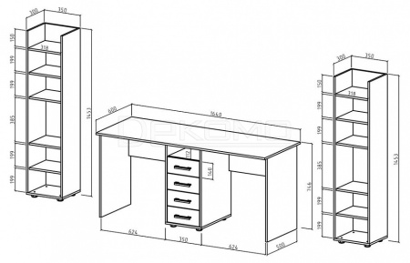 2 шкафа комбинированных - 350x300x1453 мм - Количество секций для хранения: