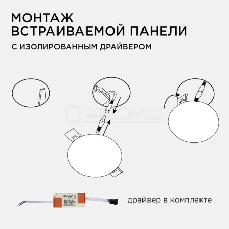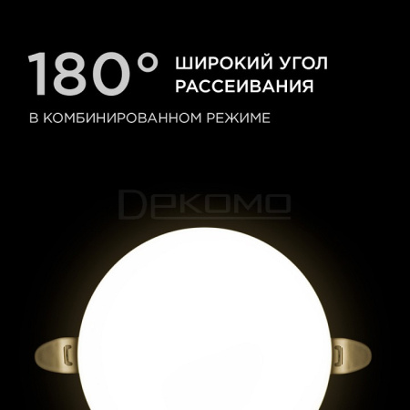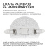 Особенностью данного изделия является 3-х ступенчатая регулировка уровня освещенности путем нажатия клавиши выключателя:освещение всей поверхности плафона, угол рассеивания 180° концентрированное освещение внутреннего диаметра, угол рассеивания 120° засветка торцевой части панели, эффект "кольцевого освещения". Вторая особенность панели – регулировка крепежных зажимов под посадочное отверстие Ø55-105 мм.