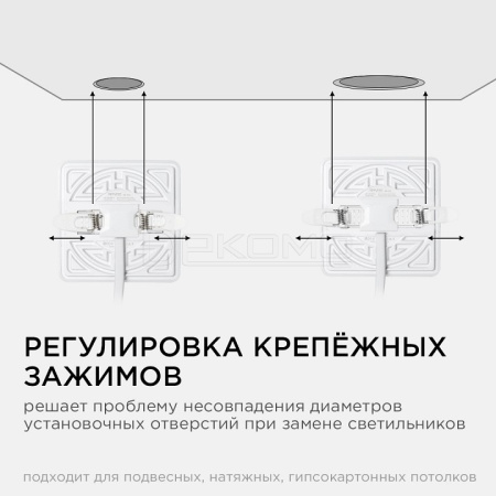 Особенностью данного изделия является 3-х ступенчатая регулировка уровня освещенности путем нажатия клавиши выключателя:освещение всей поверхности плафона, угол рассеивания 180,° концентрированное освещение внутреннего диаметра, угол рассеивания 120°, засветка торцевой части панели, эффект "кольцевого освещения". Вторая особенность панели – регулировка крепежных зажимов под посадочное отверстие Ø55-75 мм. Третья особенность – безрамочный дизайн плафона, благодаря чему возможна повышенная освещенность с углом рассеивания 180°.