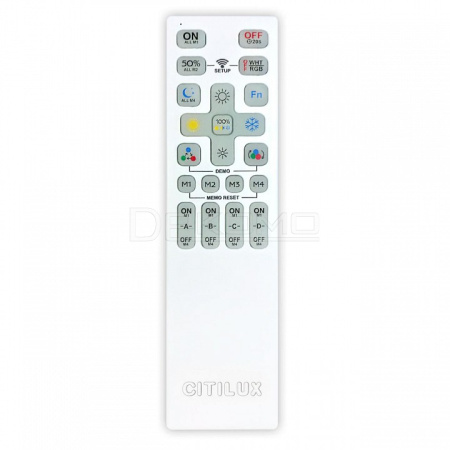 Пульт ДУ обладает широким набором функций: регулировка яркости от 10% до 100%; управление цветовой температурой в диапазоне 3000-5500К, позволяет настроить любые оттенки теплого, нейтрального или холодного света; 2 режима цветной RGB подсветки основания; отсроченное выключения и режим ночника; 4 кнопки памяти, на которых можно сохранить любые выбранные настройки и включать их в одно касание; 4 выделенных канала, к которым можно привязать неограниченное количество совместимых светильников.