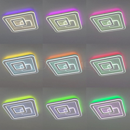 Люстра светодиодная Citilux Квест CL739B150E с RGB подсветкой и пультом дистанционного управления. Основание белого цвета, три светодиодных модуля плафона, формирующих внешний вид люстры, имеют квадратную форму. Корпус плафонов металлический, рассеиватель из оптического полимера. Изделием можно управлять с помощью радиопульта дистанционного управления и настенным выключателем.