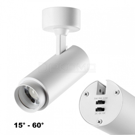 поворотный светильник с переключатель с цв. температуры и мощности (5 Вт, 9 Вт, 13 Вт)