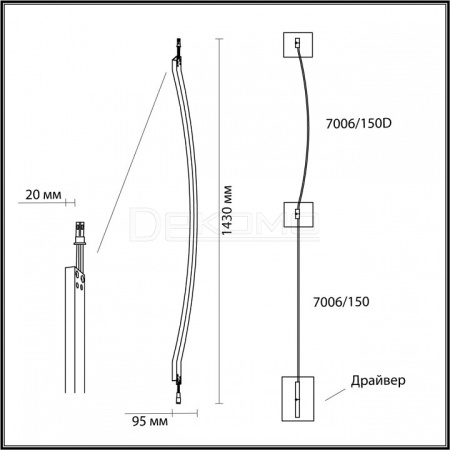 - Ш:20 x Г:95 x В:1430
