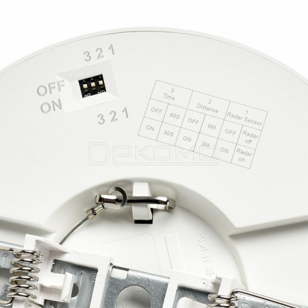 Встроенный регулируемый датчик движения с возможностью выбрать расстояние действия датчика и время отключения светильника после покидания зоны его действия.
