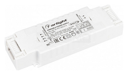 Диммируемый токовый блок питания с управлением DALI 2.0 и функцией Push Dim с гальванической развязкой. Питание 220-240AC. Выход 3-40V - ток 700/750/800/850 mA, выход 3-38V - 900 mA, выход 3-36V - 950 mA, выход 3-35V -1000 mA, выход 3-33V -1050 mA макс. мощность 35W, PF >0,95. Размеры 136x42.5x24 мм. (96х42.5х24 мм. без крышек) Гарантия 5 лет.