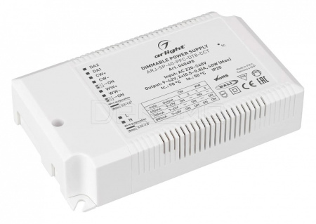 Диммируемый источник тока по протоколу DALI DT8 с гальванической развязкой для MIX (CCT) светильников. Входное напряжение 220-240 VAC. Выходные параметры: 9-42В 2х 500-800mA, 40 Вт. Встроенный PFC >0.95. Негерметичный пластиковый корпус IP 20. Габаритные размеры длина 137 мм, ширина 82 мм, высота 31 мм. Подходит для управления светильниками со светодиодами двух цветов свечения (MIX). Гарантийный срок 5 лет.