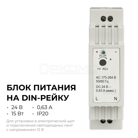 Блок питания 15Вт 24В 03-163