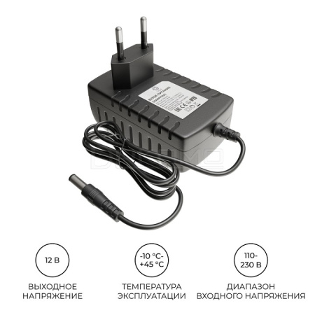 - коннектор 2.5x5.5 мм., длина провода 90 см.