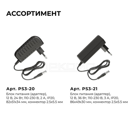 Блок питания с проводом 24Вт 12В PS3-20